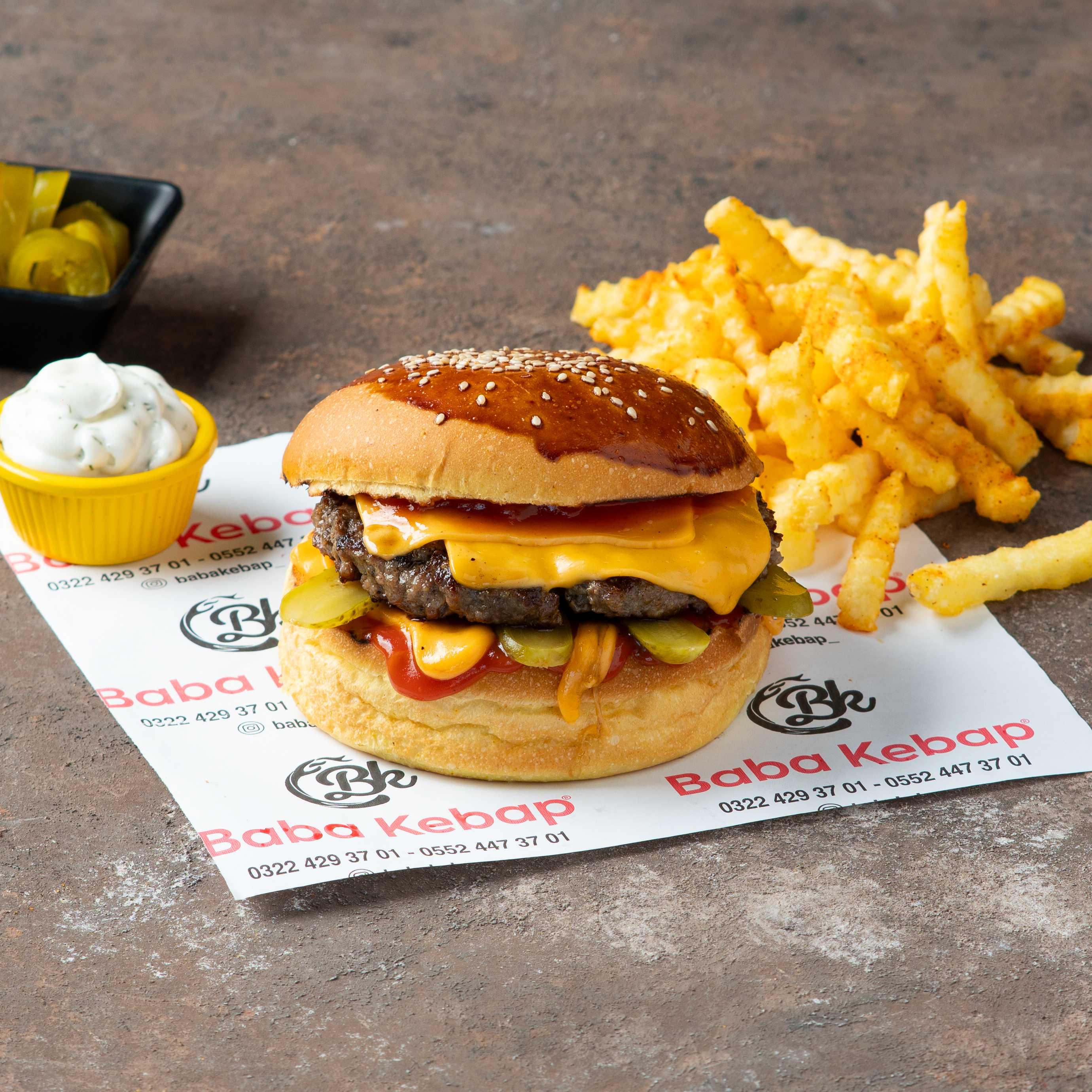 150 GR %100 DANA ETİ, CHEDDAR PEYNİRİ, TURŞU, KETÇAP , CİPS