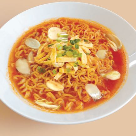 Pirinç kekili İnseoul Ramyeon (Noodle, özel acı sos, yumurta, yeşil soğan,tavuk suyu, pirinç keki )