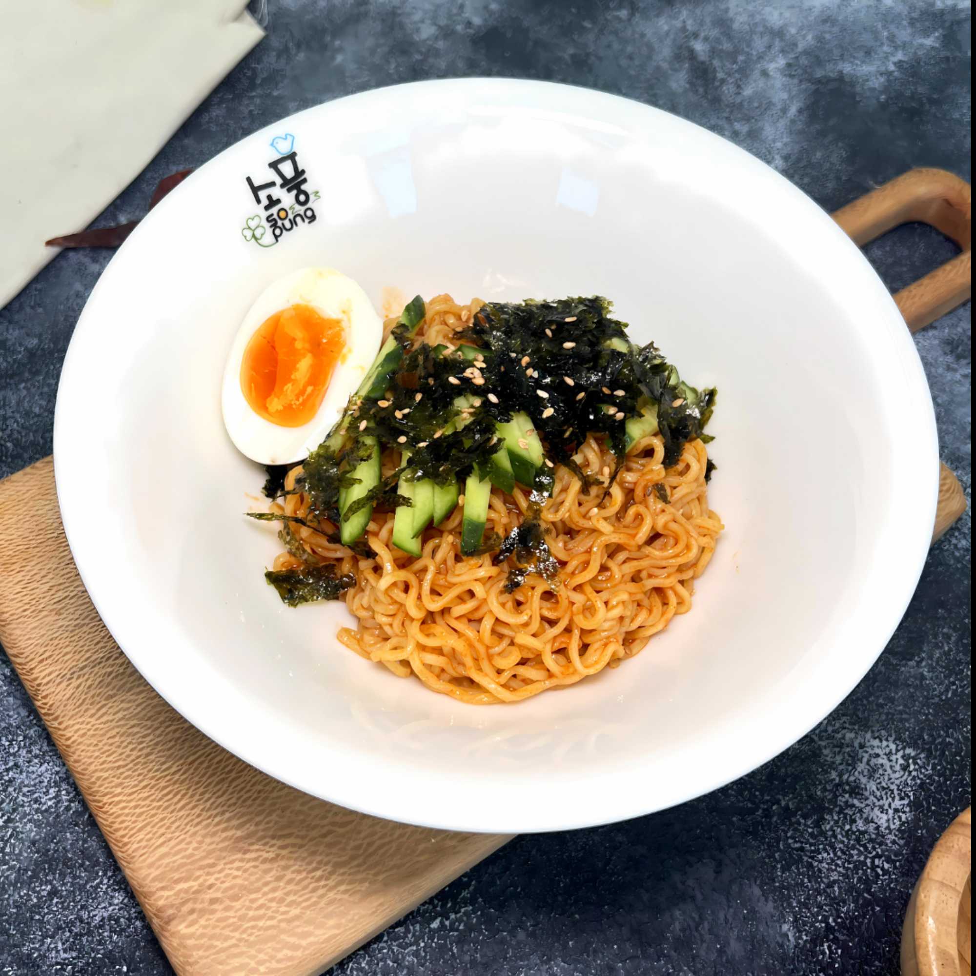 Bibim Soslu Noodle, Üzerinde Yosun, Salatalık ve Yumurta! (ACI SEVİYESİ 2)