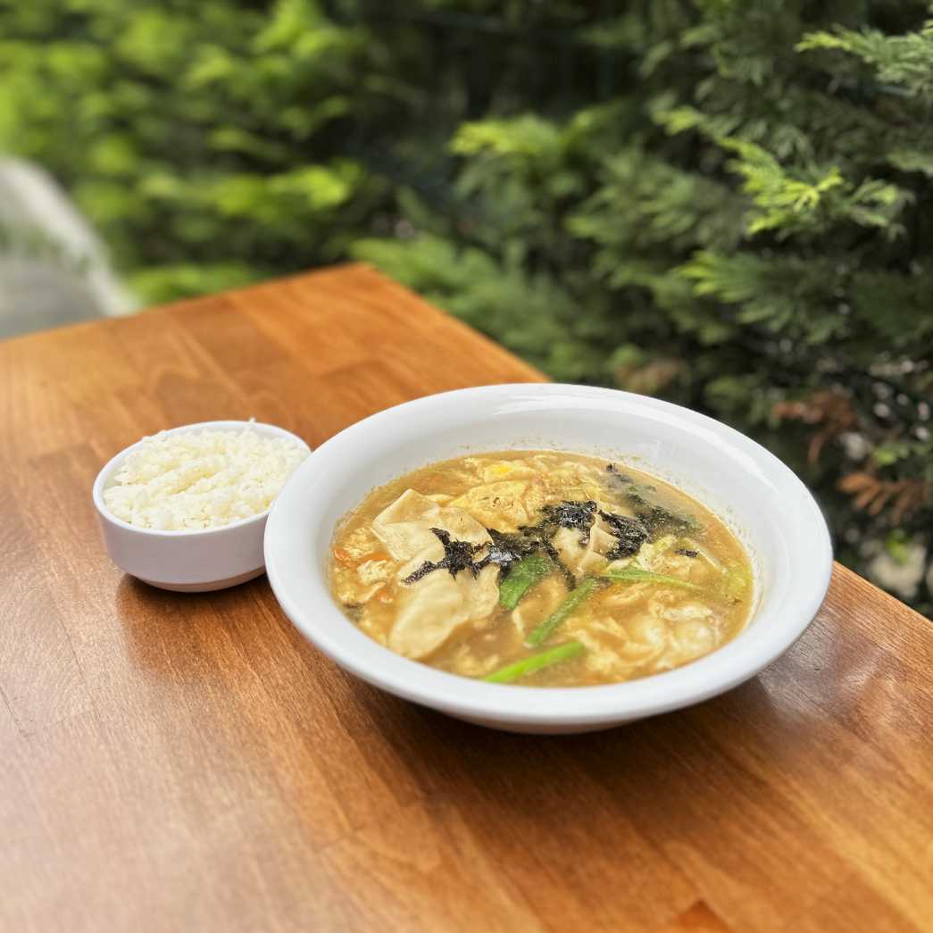 İnce Doğranmış Pirinç Kekleri, 3 Adet Mandu ve Sebzeler
