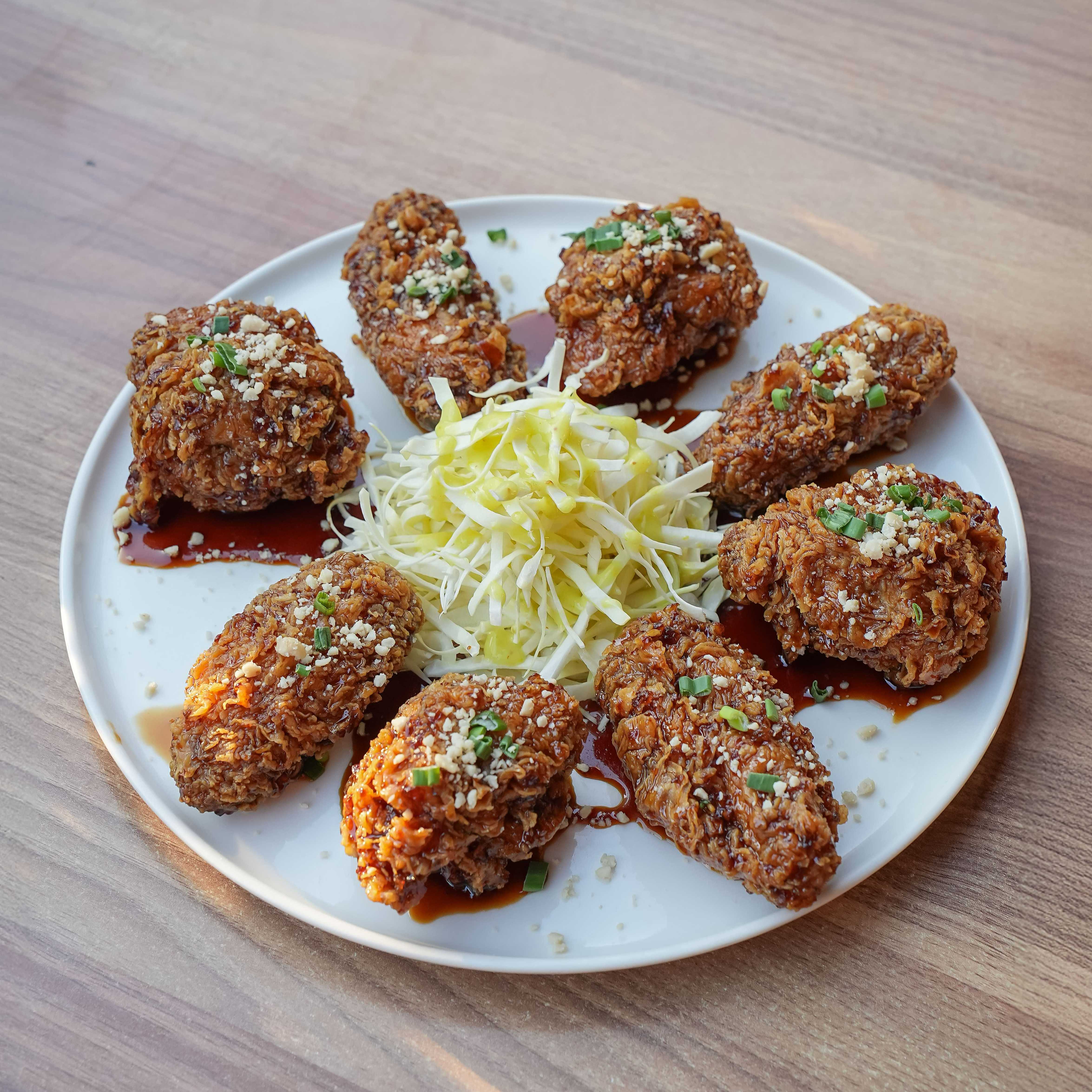 Kemikli Çıtır Teriyaki Soslu Tavuk Kanat, (Tavuk kanadı ve özel tavuk unundan yapılır.) ACI SEVİYESİ 0
