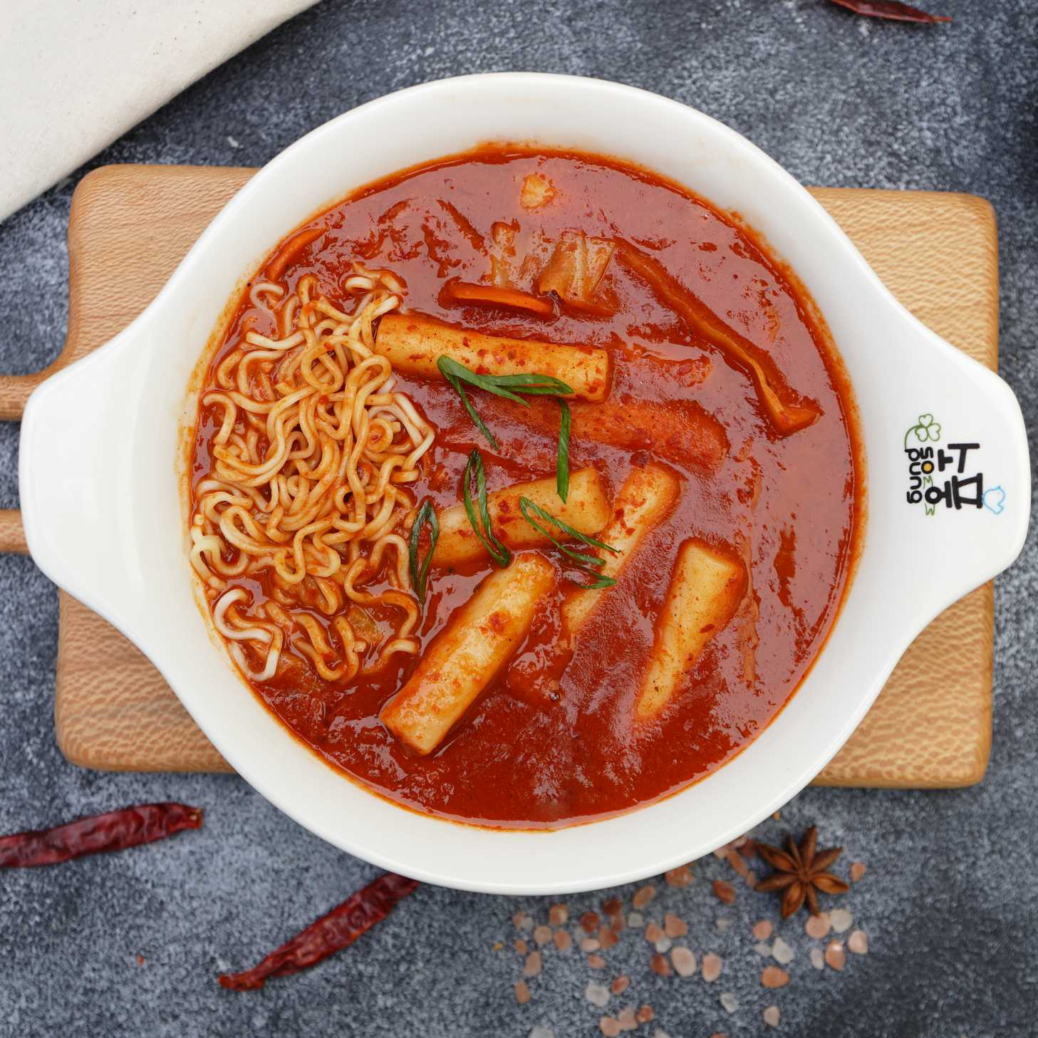 Kore Özel Acı Salça Sosunda Haşlanmış Sebze, Pirinç Kekleri ve Noodle (ACI SEVİYESİ 3) 🌶️🌶️🌶️
