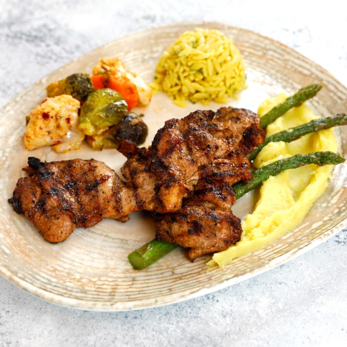 Tikka masala soslu ızgara tavuk, sebze sote, kibrit patates ile..